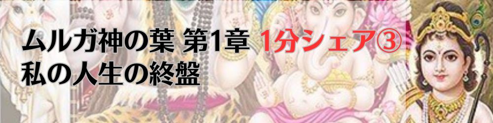 【ムルガ神の葉 第1章 1分シェア③ 私の人生の終盤】このように本人は。自分のカルマをきっちり解消して、さらにグル様の祝福、大聖者の祝福などを得ていけば、今生で83歳以上を健康で長く生きていく運を持っています。彼らの祝福をどんどん得て、寿命が長くなり、かなりの期間長生きできるようになります。本人は人生の最後まで自分の能力を常に活用し、常に生かしていろんな世話をして仕事をしていきますので、それで皆に非常に尊敬され、かなりの権限と権威を持って、皆に喜ばれる。