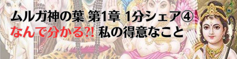 【ムルガ神の葉 第1章 1分シェア④ なんで分かる?! 私の得意なこと】(録音書き起こし)本人は人々に良いことを教える能力を、いっぱい持っていて、それを上手く伝えてみんなに理解してもらう優れた話術があります。どういうことをどのように教えれば、皆が理解して、それを生活に取り入れることができるかというのを一番よく知っていて、非常に上手に自分の教えたいことを教えて、それによって皆に喜ばれて、好かれて称賛されるようになります。どの分野のことを勉強しても、その分野のことを徹底的に勉強し、細かいことまでよく理解し、それをマスターし、それを自分のものにして、上手に人々にうまく伝える能力があり、今後もそういう能力をもっと、本人は、どんどん高めていきます。